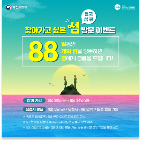 [스탬프투어챌린지][한국섬진흥원]88개 찾아가고 싶은 섬 방문 이벤트 <전국 섬 편>